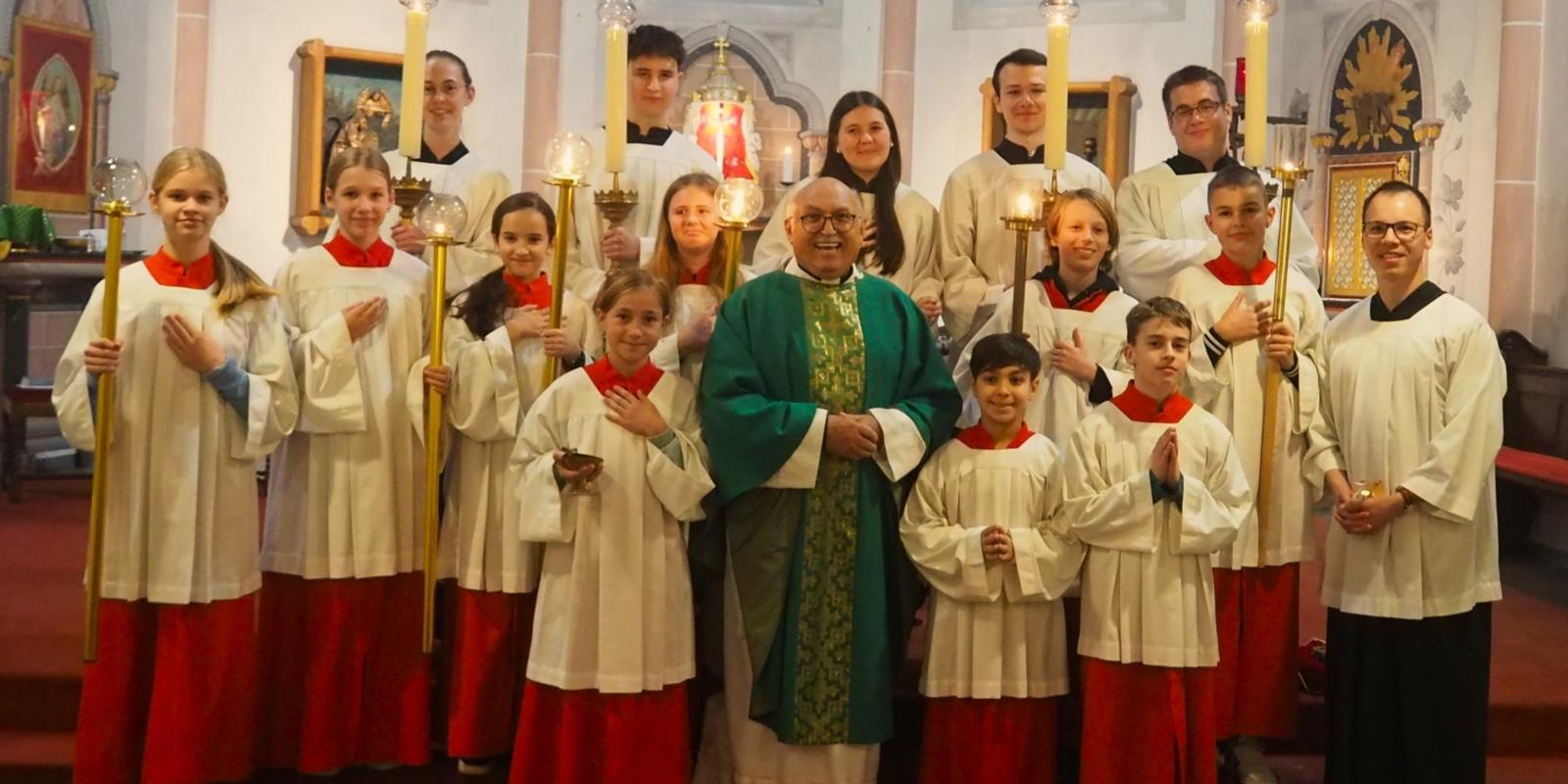 Am Samstag, 21.10. feierten wir die Einführung von Rihanna Kasper als Messdienerin und die Aufnahme von Florentine Westerweller als Leiterin der Rosbacher Ministranten an St. Joseph. In einer mehrmonatigen Vorbereitungszeit hat Rihanna nicht nur den Dienst am Altar kennengelernt, sondern auch das bunte Treiben in unserer Pfarrei. Das Pfarrfest, den Ministrantentag in Altenberg, die 125-Jahrfeier, das Kapellenfest, das Zeltlager in Lindlar, das Erntedankfest mit Apfelpflücken in Bitzen und unzählige Gruppenstunden voller größerer und kleinerer Aktionen. In der Messe war unser Thema die "Weitergabe des Feuers". Damit ist gemeint, dass unsere Begeisterung für die christlichen Traditionen & Bräuche in unserem Glauben eine Heimat findet und wir mit unserem Feuer andere Menschen in unserer Umgebung anstecken. Ohne diese Weitergabe verlieren die Traditionen ihre Bedeutung und sind nur noch leere Hüllen. An Ostern geht es nicht um die Ostereiersuche, sowie es an Weihnachten nicht um Geschenke geht. Beide Feste haben eine tiefere Bedeutung, die im Glauben ihren Ursprung findet.